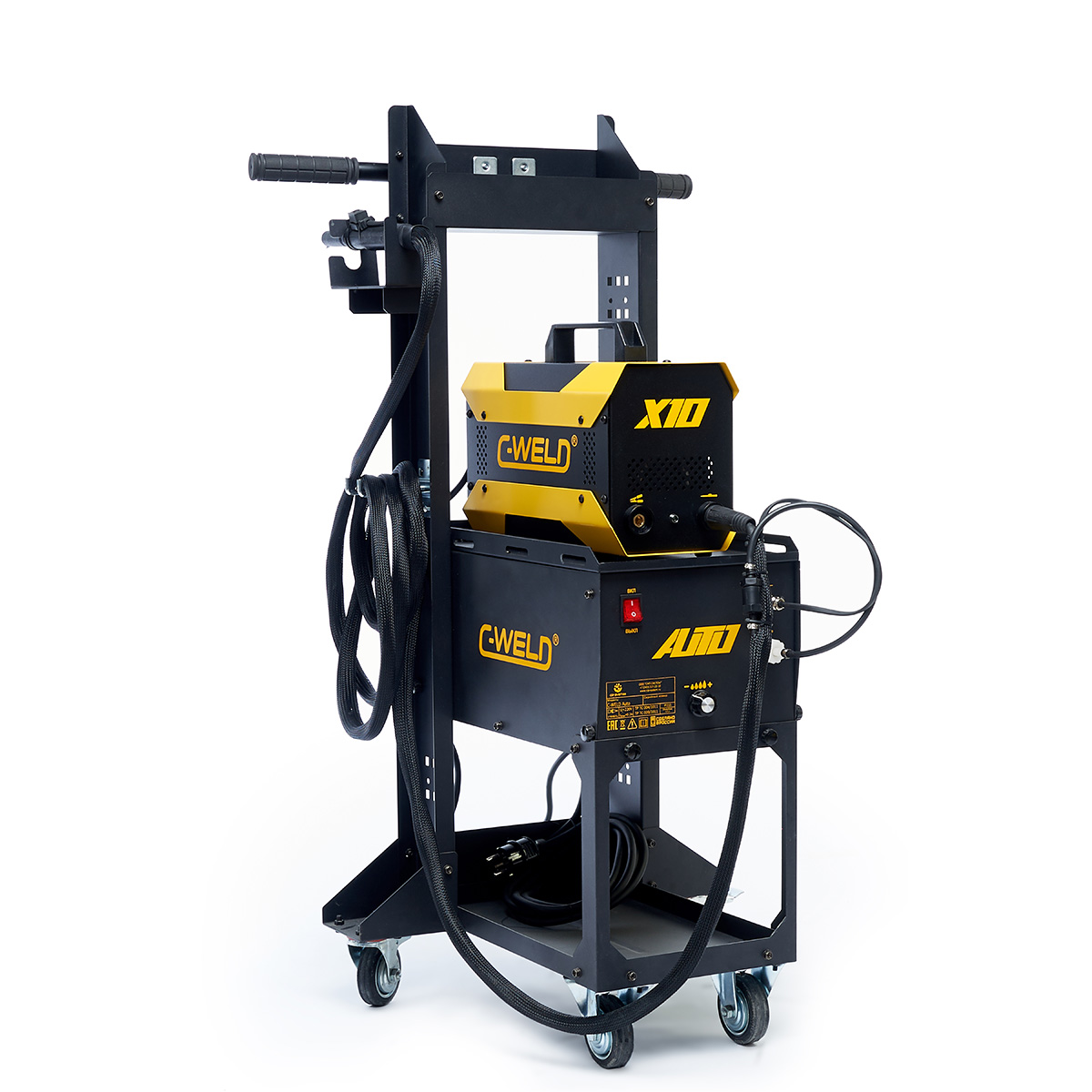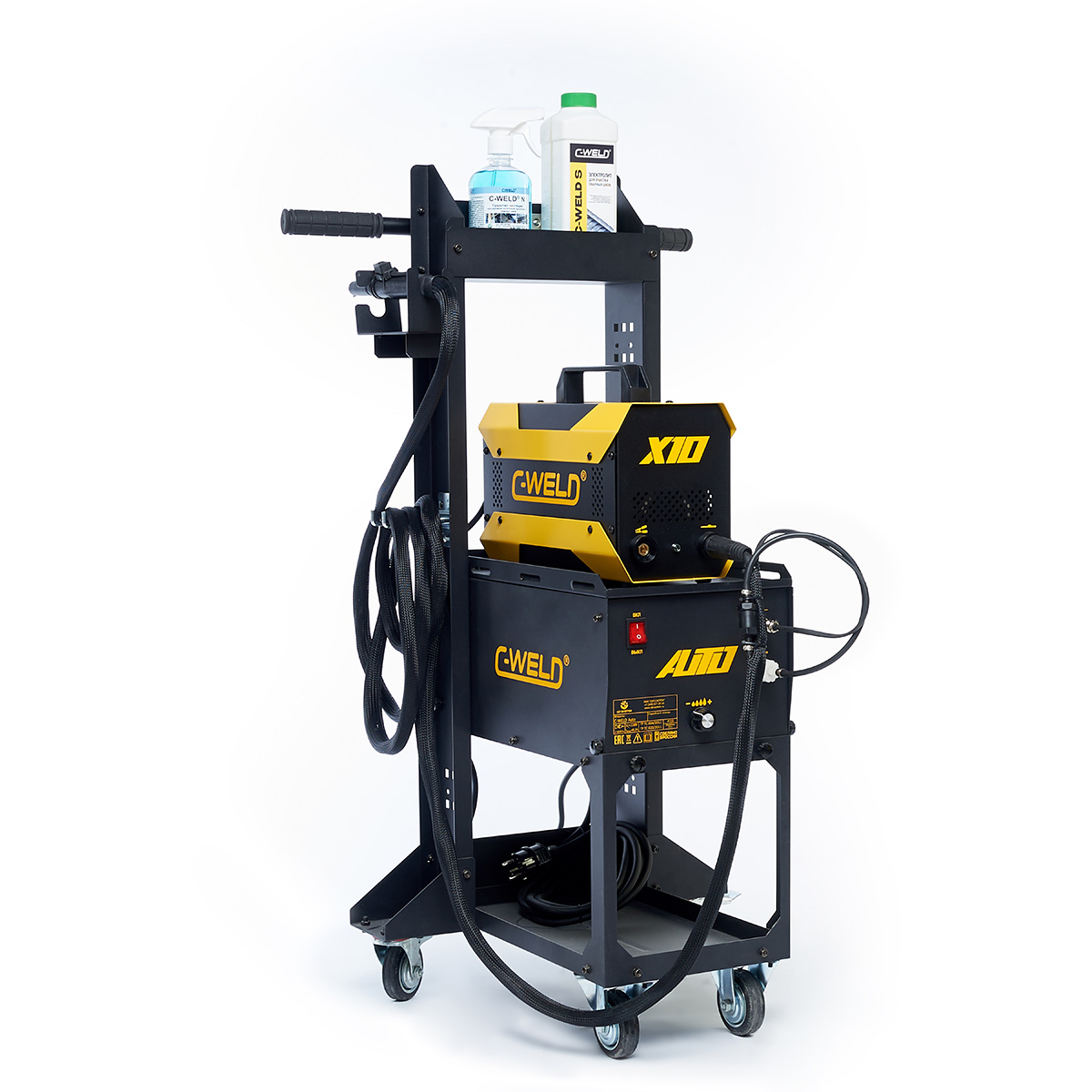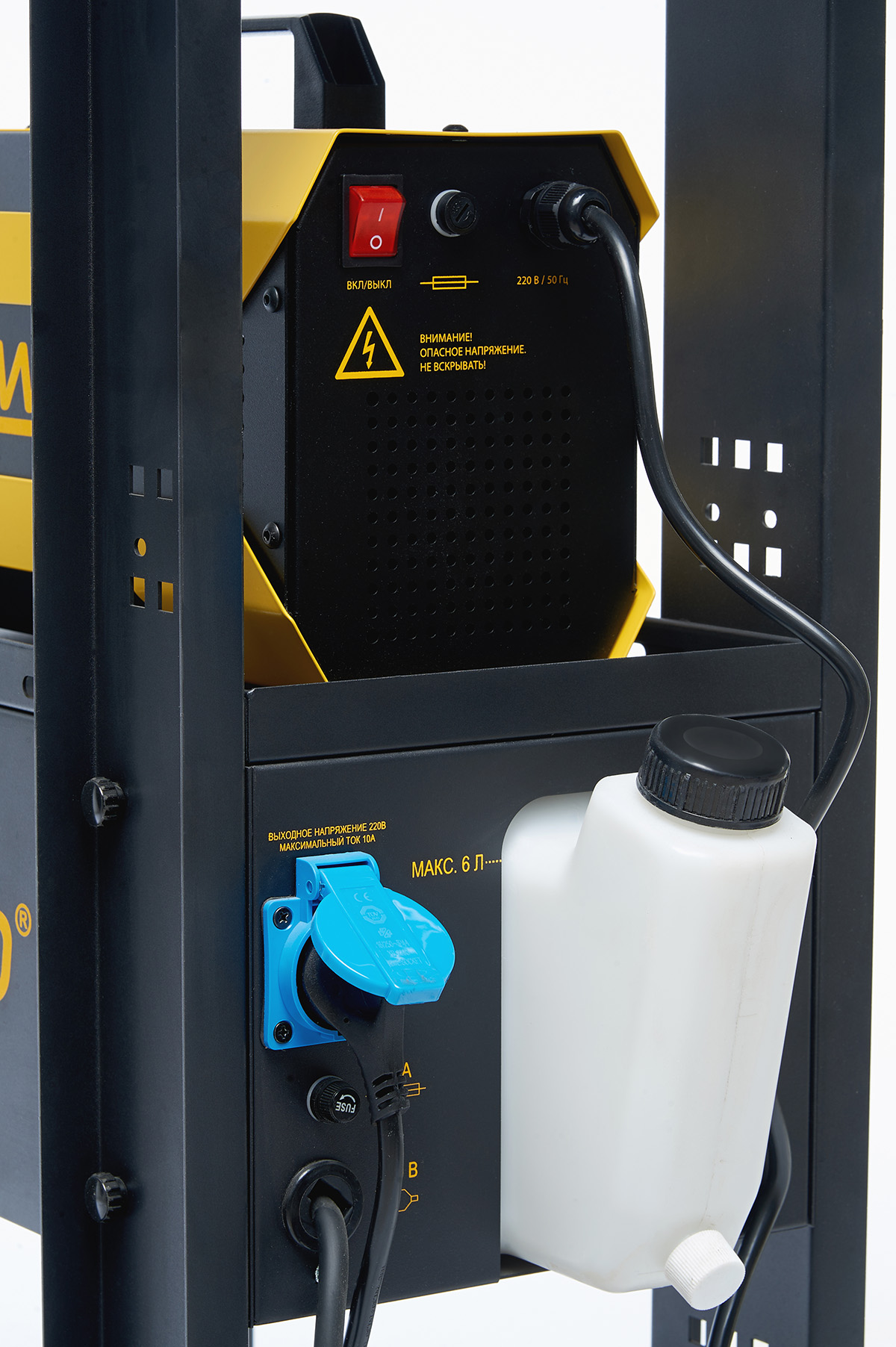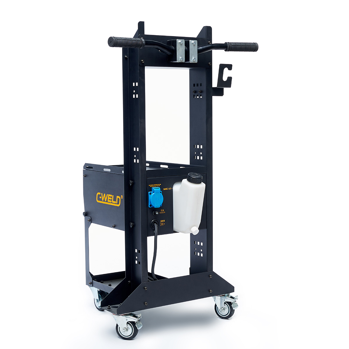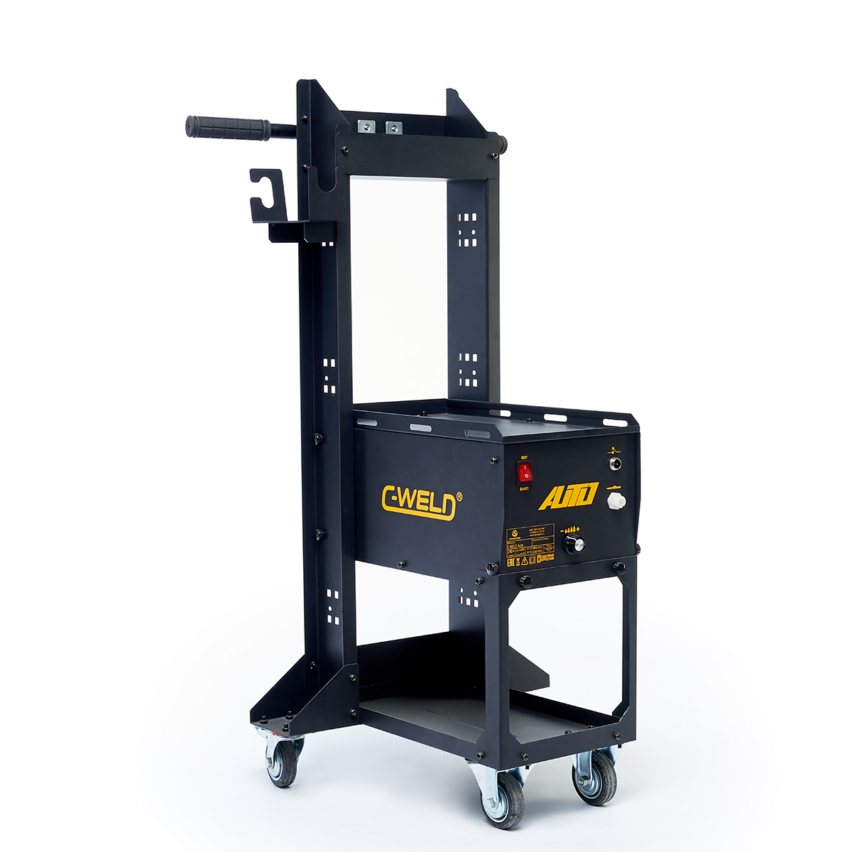 - Удобная конструкция на роликовых опорах позволяет легко перемещать установку по рабочей зоне. На нижней полке можно хранить расходные материалы.