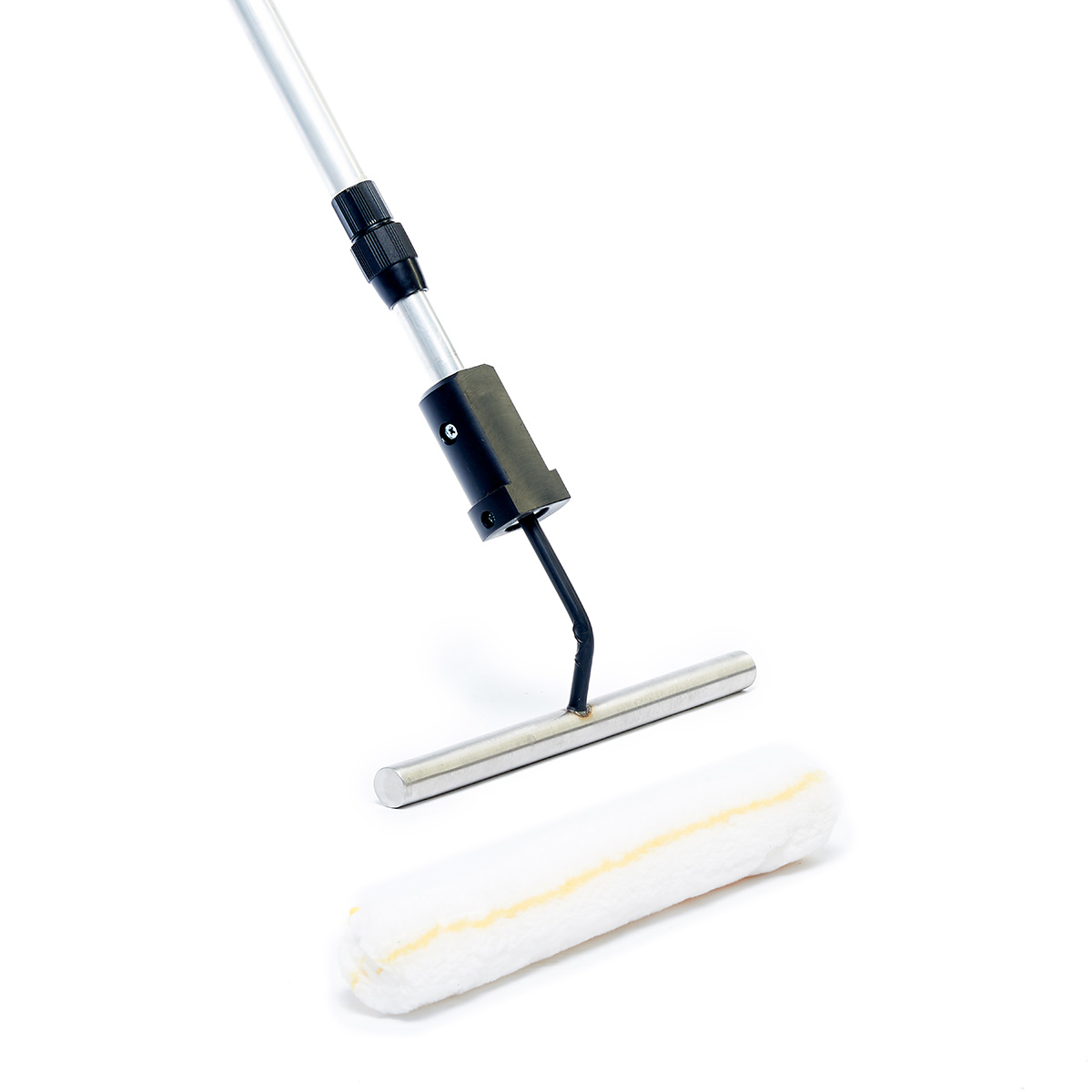 Одиночное питание для пассивации больших поверхностей с использованием телескопической рукоятки с чистящей насадкой.