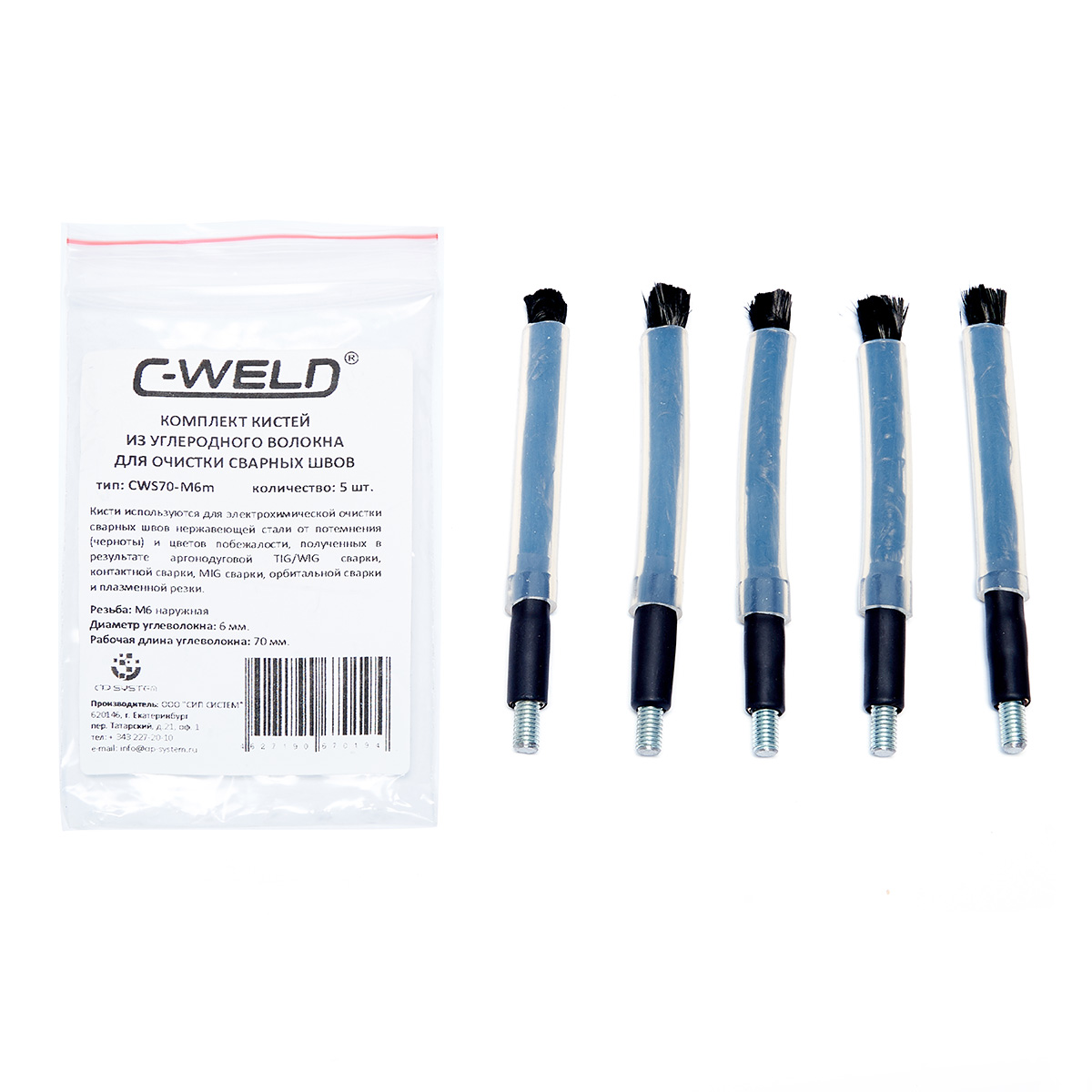 Комплект кистей из углеволокна C-WELD S70 в силиконовой оболочке. Резьба М6-наружная