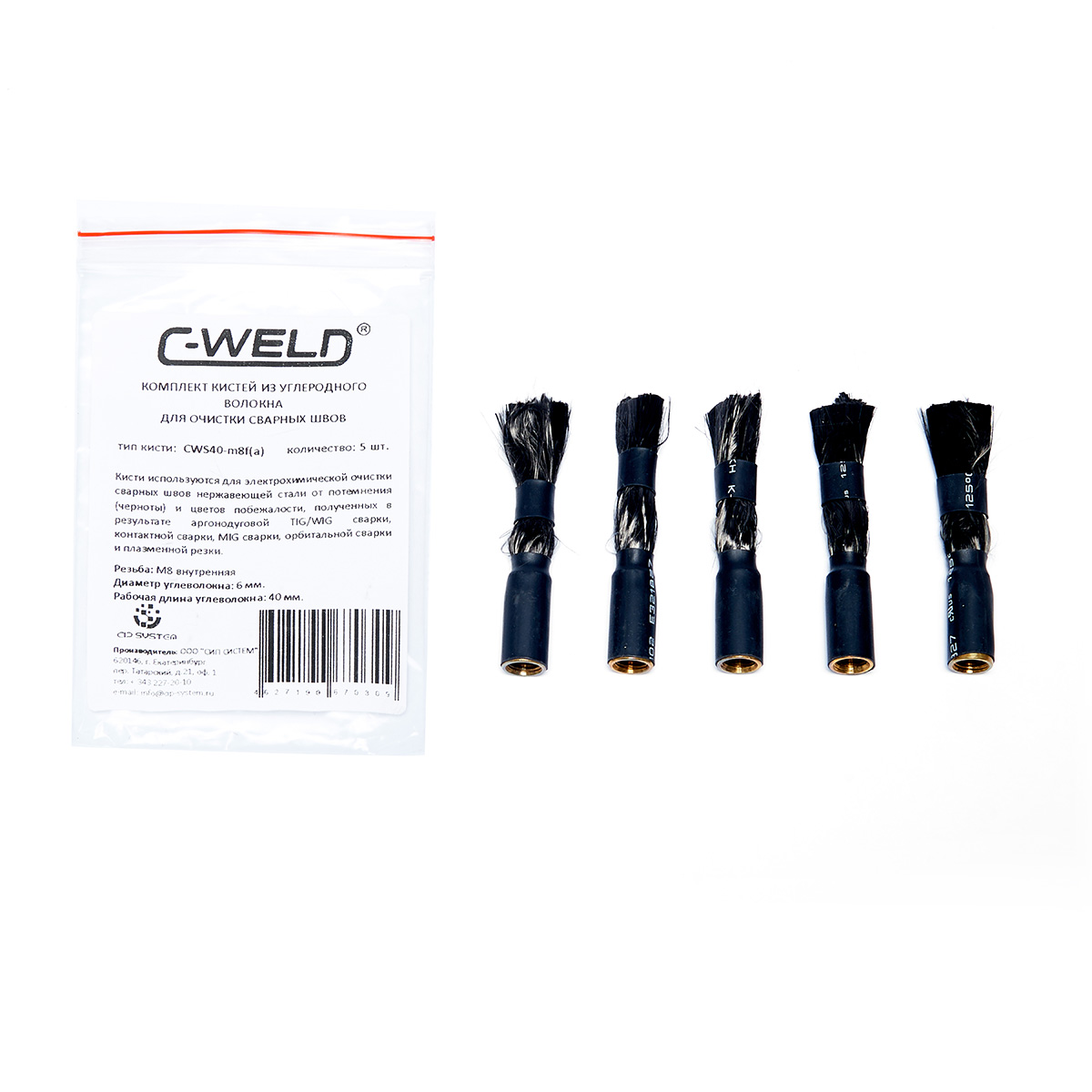 Кисть изготовлена из углеродных волокон для лучшей передачи тока при электрохимической очистке сварочных швов. Благодаря небольшому диаметру и гибкости, кистью удобно производить очистку сварных швов в труднодоступных участках. Углеродные волокна не ломаются, имеют хорошую электропроводность и долгий срок службы.