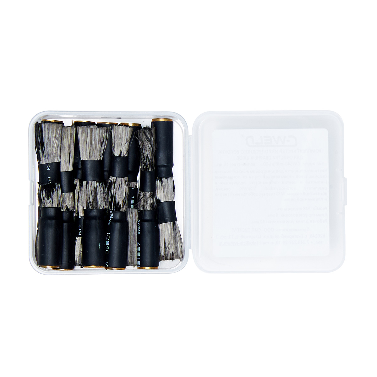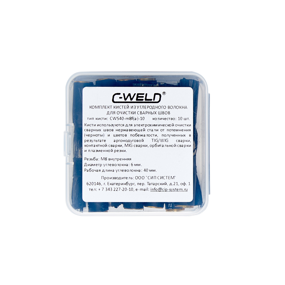 Кисть изготовлена из углеродных волокон для лучшей передачи тока при электрохимической очистке сварочных швов. Благодаря небольшому диаметру и гибкости, кистью удобно производить очистку сварных швов в труднодоступных участках. Углеродные волокна не ломаются, имеют хорошую электропроводность и долгий срок службы.