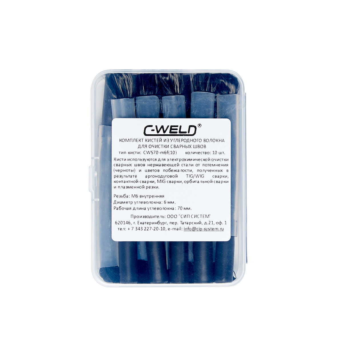 Кисть изготовлена из углеродных волокон для лучшей передачи тока при электрохимической очистке сварочных швов. Благодаря небольшому диаметру и гибкости, кистью удобно производить очистку сварных швов в труднодоступных участках. Углеродные волокна не ломаются, имеют хорошую электропроводность и долгий срок службы.